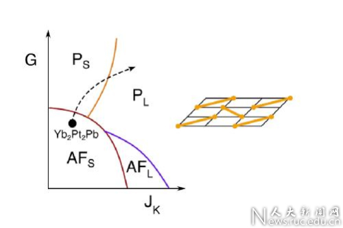 PS与PL相是费米面拓扑性质不同的顺磁相,而AFS与AFL相是费米面拓扑性质不同的反铁磁相。虚线表示重费米子材料Yb2Pt2Pb在外界条件调制下可能经历的相变路径。