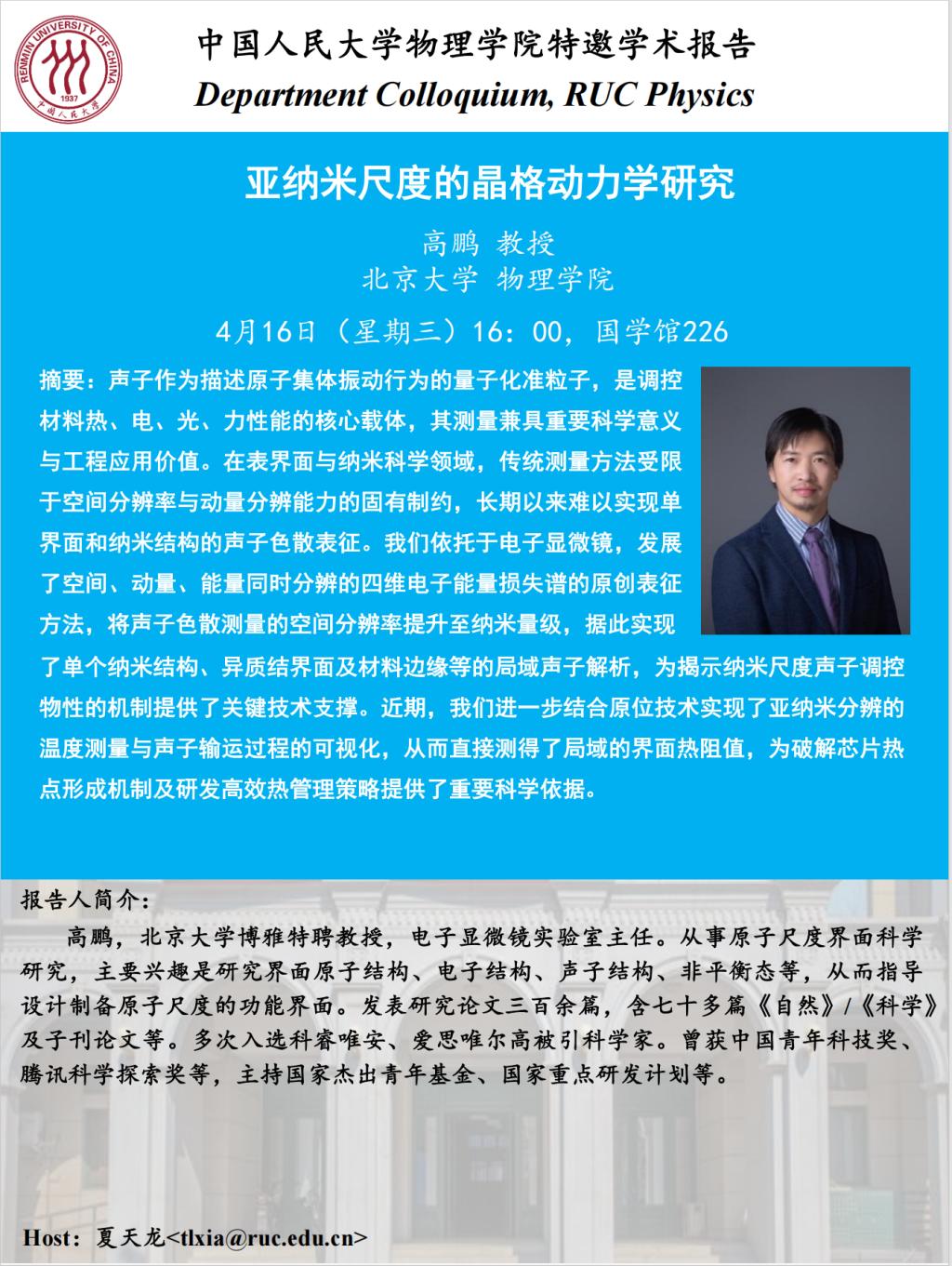 表面分子纳米科学:从界面合成到质子序量子效应探测与调控