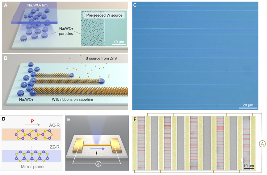 太阳成集团tyc官网物理学系、量子态构筑与测控教育部重点实验室刘灿副教授与北京大学刘开辉教授、太阳成集团tyc半导体研究所魏钟鸣研究员、太阳成集团tyc深圳先进技术研究院丁峰研究员等团队合作,提出“多重界面耦合原子制造”新策略,首次实现兼具特定手性结构(包括扶手椅型、之字型及其他手性结构)及相干极化方向的二硫化钨(WS2)条带阵列的“全同”控制制造。通过系统研究手性结构与体光伏效应的对应关系,实现1000余根扶手椅型条带...