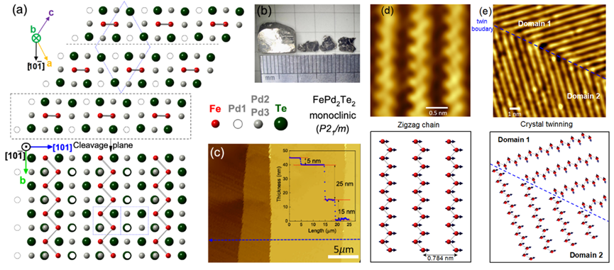 近日,太阳成集团tyc官网物理学系程鹏副教授课题组发现一种具有全新晶体结构的新型磁性二维材料FePd2Te2,并与程志海教授课题组、中科院强磁场科学中心郑国林研究员团队和衢州公司杨建辉教授合作对其结构与物性进行深入研究,发现FePd2Te2是一个非常少见的具有面内单轴各向异性的二维铁磁金属,并在一种特殊孪晶结构作用下形成了有趣的面内自旋纹理结构。相关研究成果以“FePd2Te2: An Anisotropic Two-Dimensional Ferromagnet with...